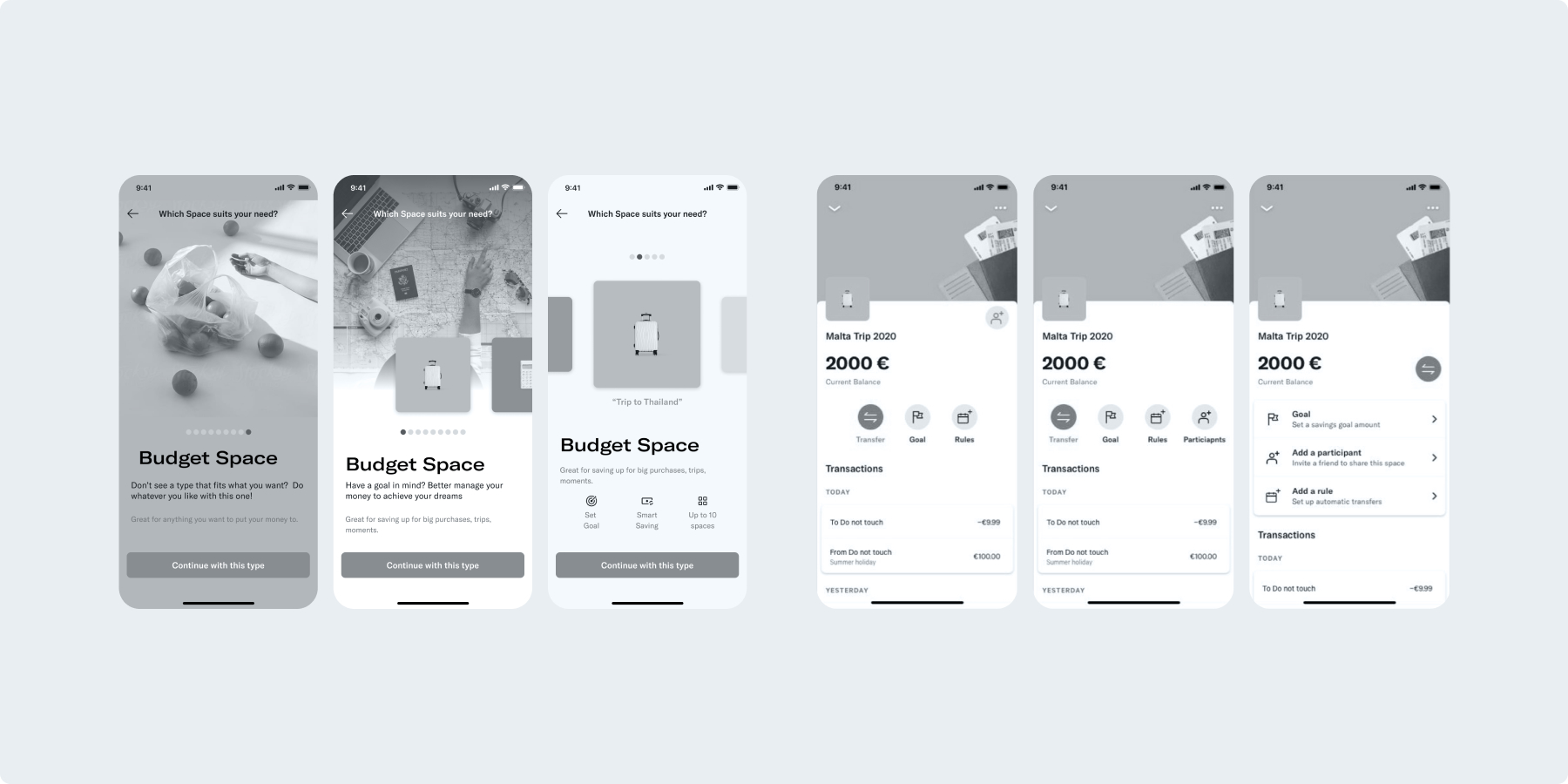 These were some discarded explorations of the creation flows and the details page that I worked on. Feedback was gathered from stakeholders and team members to iterate the designs further while keeping everyone involved and aligned. [new: old throwaway designs of both parts]